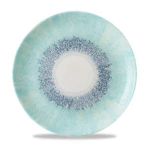 Studio Prints Fusion showcases a textured border effect, inspired by the fusion of multi-tonal reactive glazes. Radial and expressive, this design blends colour and texture with a contemporary white centre, ideal for framing premium food presentation.