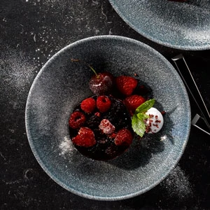 The Studio Prints Raku Coupe Bowls from Churchill provides a rustic presentation for starters, appetisers or desserts. Featuring a textured design in topaz blue and a superior glazed finish, these bowls offer a unique display.