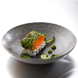 Offering a unique food display, these Studio Prints Raku Quartz Black Coupe Bowls are perfect for presenting starters, pasta dishes or desserts. Featuring a charcoal black colouring and dappled textured design. Made with a solid Super vitrified China construction and a superior ecoglaze finish, which offers extra durability and longevity.